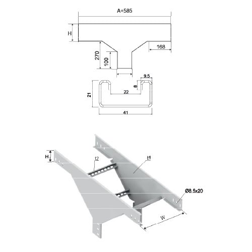 Ardic Kabelgoot midden horizontaal T-stuk 10cm